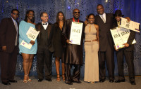 Seen here showing off their BMI Urban Awards for the Faith Evans hit "I Love You" are Universal Music Publishing's Maani Edwards and Ethiopia Habtemariam, BMI's Del Bryant, EMI Music Publishing's Angelique Miles, BMI ICON Isaac Hayes (co-writer of "I Love You"), BMI's Catherine Brewton, EMI Music Publishing's "Big Jon" Platt and Top 10 Songwriter/Producer Mario Winans, who also co-wrote… View Photo