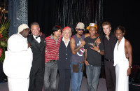 Producer/songwriters Rodney Jerkins, Pharrell Williams, and Dallas Austin, who produced and performed the musical tribute to BMI ICON Award winner James Brown, Brown, BMI's Frances Preston and Catherine Brewton, and producer Chad Hugo View Photo