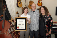 Elizabeth Luttinger was named one of three recipients of the 21st annual Pete Carpenter Fellowship, awarded each year to aspiring film composers under the age of 35. Pictured are Luttinger, Mike Post and BMI’s Linda Livingston. View Photo