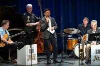 Workshop Associate Director Alan Ferber introduces Michael R. Dudley Jr.’s composition “Infidels” at the 36th Annual BMI Jazz Composers Workshop Summer Showcase on June 20, 2025 at Symphony Space in New York City. View Photo