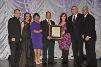 Pictured at the 19th Annual BMI Latin Awards are peermusic’s Julio Bague; BMI’s Delia Orjuela; Chaf Enterprises’ Maria Lozano; peermusic Latin Scholarship winner Jean Carlos Almonte; peermusic’s Yvonne Drazan, BMI’s Phil Graham; and the BMI Foundation’s Porfirio Piña. View Photo