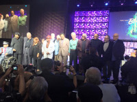 Music industry executives, including BMI’s President & CEO Mike O’Neill (front row, second from left), Songwriters Hall of Fame honorees, presenters and performers gather for a group photo at the 2017 Songwriters Hall of Fame gala. View Photo