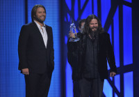 James Otto, Jamey Johnson and Lee Thomas Miller accept the Song of the Year trophy at the 2009 CMA Awards on November 11 in Nashville. View Photo
