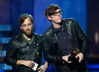 Musicians Dan Auerbach (L) and Patrick Carney of the Black Keys accept Best Rock Performance for "Lonely Boy" onstage at the GRAMMYs. The also won Best Rock Song and Best Rock Album. View Photo