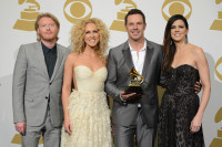 Phillip Sweet, Kimberly Schlapman, Jimi Westbrook and Karen Fairchild of Little Big Town, winners of Best Country Duo/Group Performance for "Pontoon", pose in the press room. View Photo