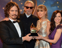 BMI Songwriters John Paul White, T-Bone Burnett, Taylor Swift and Joy Williams (ASCAP) after winning Best Song Written For Visual Media for their song "Safe & Sound" (From The Hunger Games). View Photo