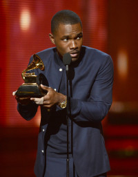 Frank Ocean accepting one of his two Grammy wins onstage, for Best Rap/Sung Collaboration and Best Urban Contemporary Album. View Photo