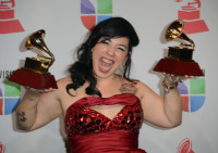 Carla Morrison poses with her awards for Best Alternative Music Album and Best Alternative Song at the 13th annual Latin GRAMMY Awards held in Las Vegas. View Photo