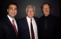 BMI's Brandon Bakshi, Trevor Horn (PRS) and BMI's Simon Aldridge celebrate Horn’s Outstanding Contribution to British Music award during the 55th annual Ivor Novellos. View Photo