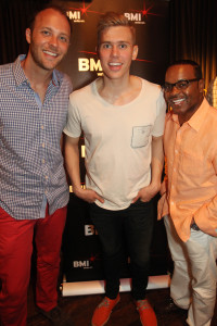 BMI’s David Claassen, EPIC new signee Jon Jonsson and Manager Bryant Reid pose after BMI Presents: Eddie’s Attic Songwriter Series June 25 in Decatur, GA. View Photo