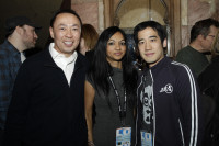 BMI’s Ray Yee; composer/musician Gingger Shankar; and composer David Laing enjoy the annual BMI dinner at Zoom. View Photo