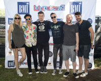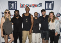 BMI’s Samantha Cox, Unified Highway’s Mitchell Wilcox, Amp Live, Eric Rachmany, BMI’s Tim Pattison and Nina Carter take a picture following their set. View Photo