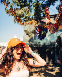 BMI Lounge guests sport merchandise from Aperol Spritz at ACL Festival. View Photo