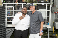 BMI songwriter DeRobert Adams of DeRobert & The Half Truths and BMI’s Mark Mason gather for a photo backstage during Austin City Limits Music Festival on October 9, 2015, in Austin, TX. View Photo