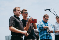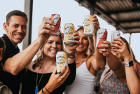 Guests raise a toast with their Bartles & Jaymes beverages. View Photo