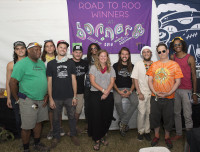 ROAR’s Marco Martinez, sound technician EL Copeland, ROAR’s Dan Twiford, Troy Wiggins, Zach Fowler and Jeremyck Smith, BMI’s Nina Carter, ROAR’s Austin Smith and Adam Quellhorst, sound technician Shaun Washburn and ROAR’s Justin Smith pose for a photo before their set as reigning champs of the BMI Road to Roo competition. View Photo