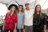 AC Entertainment’s Christina Persico, Brian Asplin, members of Chrome Pony and BMI’s Mark Mason gather for a photo at the Miller Lite New Music on Tap Lounge at Bonnaroo Music Festival on June 14, 2015, in Manchester, TN. View Photo