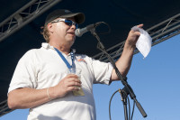 103.1 WFKZ Radio’s Bill Hoebee greets the crowd at the Ocean Key Sunset Pier Kick Off Party presented by SunTrust Bank during the Key West Songwriter’s Festival on May 6, 2015, in Key West, FL. View Photo