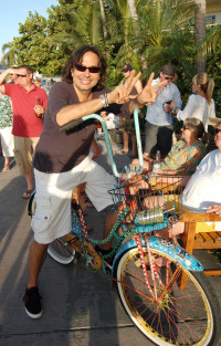 James Slater shows off a custom beach cruiser at the 2012 Key West Songwriters Festival. View Photo