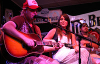 Bobby Pinson performs while Morgan Mills looks on at Cowboy Bill’s during the 2012 Key West Songwriters Festival. View Photo