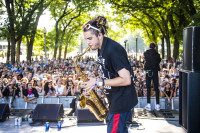 Clinton Cave of Chase Atlantic wows the crowd with his sax skills during the band’s performance on the BMI Stage at Lollapalooza 8.3.18. View Photo