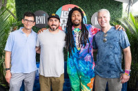 BMI’s SVP, Licensing David Levin, Associate Director, Creative Alex Bostelman, BMI affiliate Uncle Jumbo and BMI’s EVP, Chief Revenue & Creative Officer Mike Steinberg pose in the BMI Lounge at Lollapalooza in Chicago, IL on August 1, 2024. View Photo
