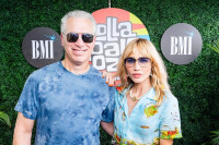 BMI’s EVP, Chief Revenue & Creative Officer Mike Steinberg and Goldie Boutilier pose backstage in the BMI Lounge at Lollapalooza in Chicago, IL on August 1, 2024. View Photo