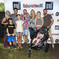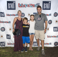 Elizabeth Smith, Trevor Smith, Skylar Smith and High Brew Coffee employee David Smith pose for a family photo at BMI’s backstage at Lollapalooza. View Photo