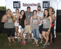 High Brew Coffee’s Rikki Kasperski, Traci Miller, McCall Holbeck, David Smith, Mari Johnson, Brian Johnson, Mandee Starsiak and Whitney Utlaut pose for a photo together backstage at the BMI stage at Lollapalooza. View Photo