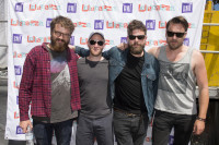 Wallpaper takes a break from performing on the BMI stage at Lollapalooza to take a photo with an enthusiastic crowd on August 2, 2014 in Chicago. View Photo