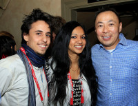 Composer Gingger Shankar; producer Nick Bruckman; Ray Yee, Assistant Vice President, Film/TV Relations, BMI; pause for a photo with XX at Zoom. View Photo