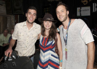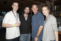 BMI's Jake Simon, Mike O'Neil and Samantha Cox pause for a photo with a friend at BMI's Howdy Texas party at Stubb's. View Photo