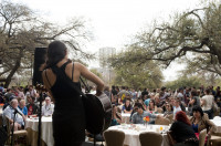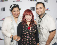 BMI's Marissa Lopez, singer/songwriter Carla Morrison, and Cosmica Records' Gil Gastelum enjoy the Acoustic Brunch, presented March 18 by BMI, Billboard and Southwest Airlines on the lawn at the Four Seasons Hotel during SXSW 2011. View Photo