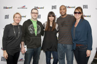 Billboard's Lisa Howard and Bill Werde, Ruby Jane, former New York Yankee and musician Bernie Williams, and BMI's Hanna Pantle gather for a photo at the Acoustic Brunch, presented March 18 by BMI, Billboard and Southwest Airlines on the lawn at the Four Seasons Hotel during SXSW 2011. View Photo