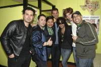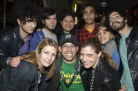 BMI's Samantha Cox, Porfirio Piña and Tracie Verlinde, kneeling, and BMI’s Marissa Lopez (center, back) and Tavi Shabestari (second from right, back) huddle for a photo with Vicente Gayo at the BMI/Remezcla.com Showcase. View Photo