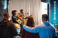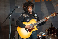 Sunny War serenades the crowd at the BMI Brunch at Geraldine’s in Hotel Van Zandt during SXSW 2023 on March 17, 2023. View Photo