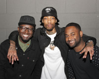 Rico Brooks, Sonny Digital and BMI's Byron Wright gather for a photo backstage at the BMI and Flight School Beat Summit showcase during SXSW on March 20, 2015, in Austin, TX. View Photo
