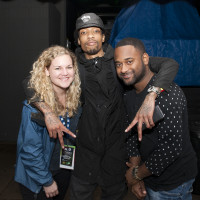 BMI's Nina Carter and Byron Wright pause for a photo backstage with Sonny Digital (center) at The Beat Summit presented by BMI and Flight School at The Belmont during SXSW on March 20, 2015, in Austin, TX. View Photo