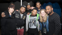 BMI's Nina Carter and Byron Wright pause for a photo backstage with Speakerfoxx, Just Blaze, Sonny Digital, Mannie Fresh and Young Guru at The Beat Summit presented by BMI and Flight School at The Belmont during SXSW on March 20, 2015, in Austin, TX. View Photo