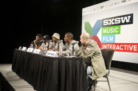 BMI curated a conversation with some of hip-hop music’s most influential producers at SXSW on March 19, 2015, in Austin, TX. Pictured here are Mannie Fresh, Just Blaze, KLC, Young Guru, and radio personality Peter Rosenberg. View Photo