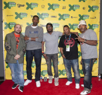 Building The Beat panelists Peter Rosenberg, Young Guru, Just Blaze, Mannie Fresh and KLC gather for a photo at SXSW on March 19, 2015, in Austin, TX. View Photo