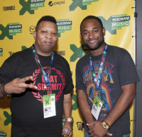 Hip-hop producers and Building The Beat panelists Mannie Fresh and KLC gather for a photo at SXSW on March 19, 2015, in Austin, TX. View Photo