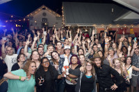 BMI’s Samantha Cox (left) and Jessa Gelt (second from right) gather for a photo with members of Small Pools at BMI’s SXSW showcase held March 18, 2015, at Bar 96 in Austin, TX. View Photo