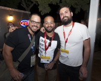 BMI’s Joey Mercado gathers for a photo with Buena Vibra’s Emil Medina and Luis Lopez at BMI’s SXSW showcase held March 18, 2015, at Bar 96 in Austin, TX. View Photo