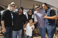 Playing in Traffic’s Kevin Womack (left) and BMI’s Mason Hunter (second from right) gather for a photo with Los Lonely Boys at the Playing in Traffic/BMI day party during SXSW at Whole Foods on March 13, 2014, in Austin, TX. View Photo