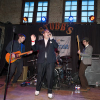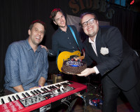 Al Gamble (left) is presented with a birthday cake by Browan Lollar (center) and Paul Janeway (right) during St. Paul & The Broken Bones’ set at BMI’s Howdy Texas party at Stubb’s BBQ during SXSW on March 11, 2014, in Austin, TX. View Photo