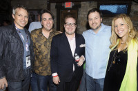 DTS’ Gier Skaaden and Kevin Doohan, Paul Janeway of St. Paul & The Broken Bones, and BMI’s Mason Hunter and Penny Everhard gather for a photo at BMI’s Howdy Texas party at Stubb’s BBQ during SXSW on March 11, 2014, in Austin, TX. View Photo
