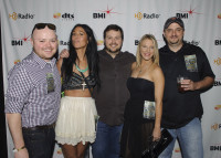 HD Radio's Juan Galdamez, Ester Levon, BMI's Mason Hunter, Amanda Martin, Jim Beam's Brent Banter gather for a photo at the Daptone Records Super Soul Revue during SXSW at ACL Live on March 15, 2013, in Austin, TX. View Photo