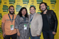 Gobbler.com's Mike Gitig, BMI's Marissa Lopez, Azteca Music Group's Carlos Alvarez and Arts & Crafts Mexico's Humberto Carmona gather for a photo before BMI's "Self Release Your Album in the US" panel at the Austin Convention Center during SXSW on March 14, 2013, in Austin, TX. View Photo