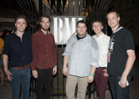 BMI's Darren Briggs, composers Christopher North, Jason Starczek and Nathaniel Smith, BMI's Doreen Ringer-Ross, and musician Jimmy Quill and fiancé Harper gather for a photo at BMI's SXSW film music dinner. View Photo